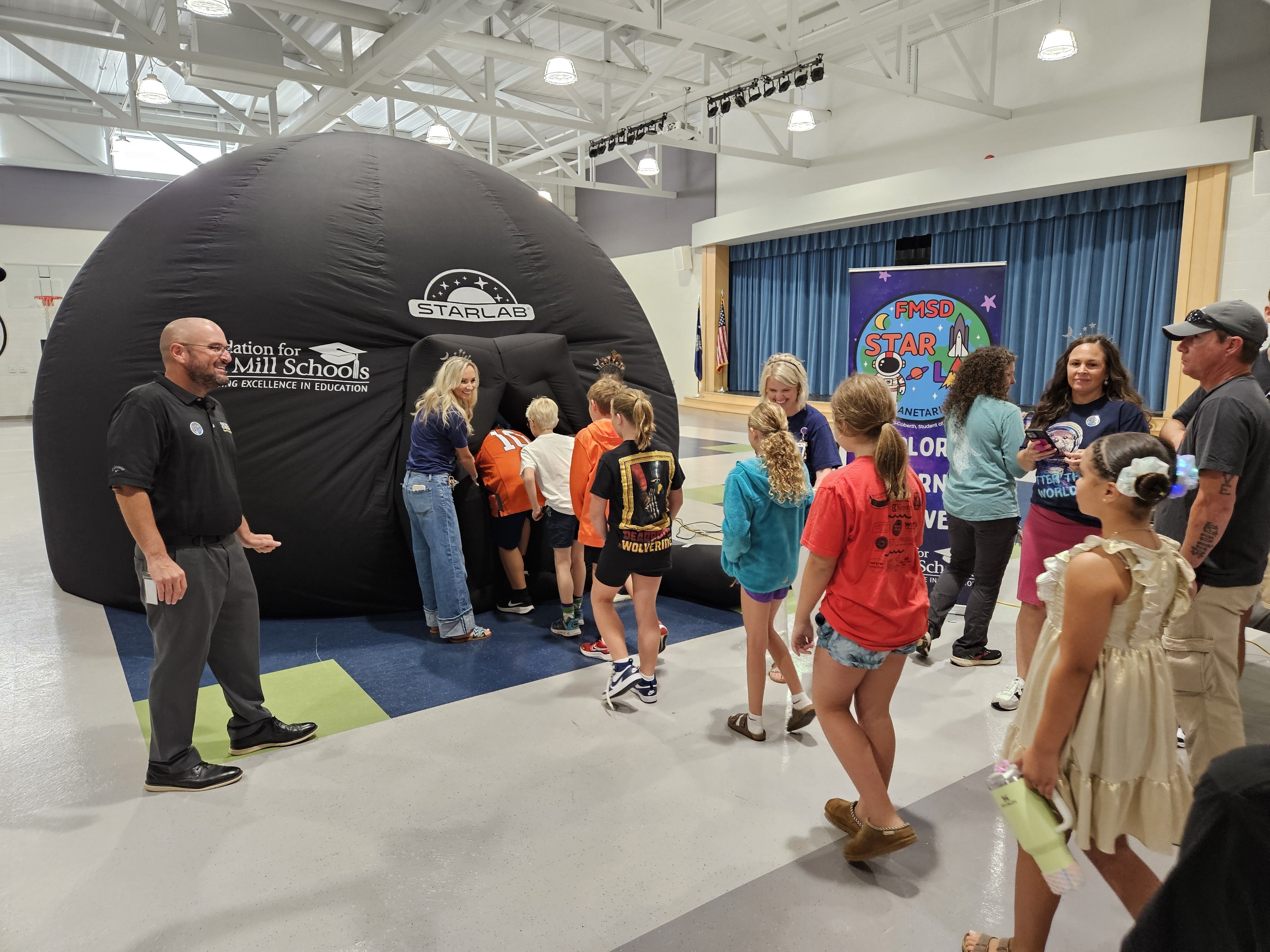 April 15, 2025. Thanks to our sponsors and supporters, the Foundation was thrilled to present the Fort Mill School District with a check for $58,500 to purchase a mobile planetarium for the Fort Mill School District. This is a portable, inflatable planetarium that comes with a comprehensive curriculum software package for programs in astronomy, geology, and meteorology. Different programs are tailored to specific grade levels to inspire students to continue their studies in science.